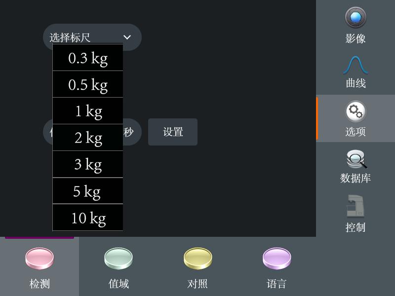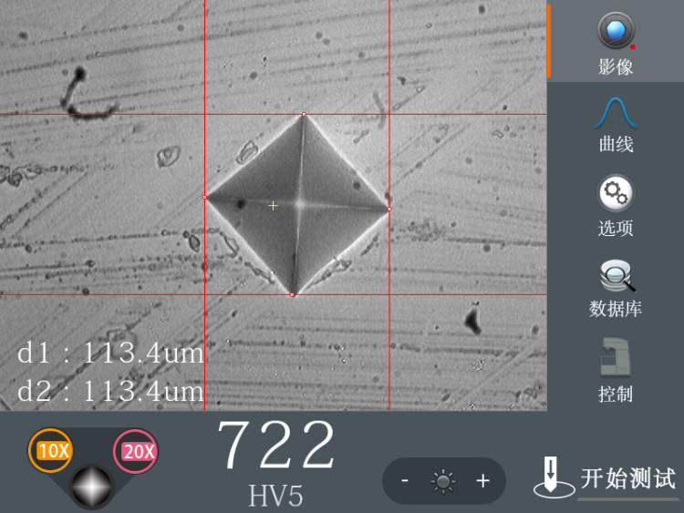触摸屏操作面板 | 影像、力值曲线、选项、数据库、控制、加载开始、灯光调节、物镜切换 | |||